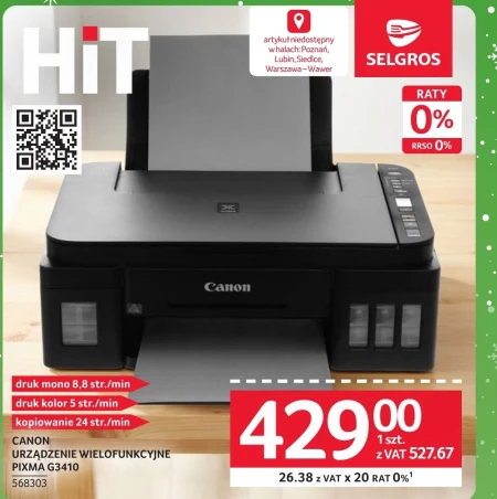 CANON URZĄDZENIE WIELOFUNKCYJNE PIXMA G3410 568303 druk mono 8,8 str./min druk kolor 5 str./min kopiowanie 24 str./min