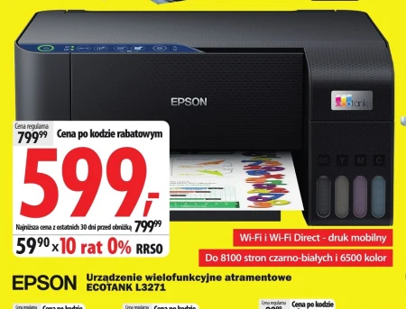 Urządzenie wielofunkcyjne atramentowe ECOTANK L3271 jest dostępne w ofercie Media Expert w cenie 599,00 zł zamiast 799,99 zł. Drukarka umożliwia drukowanie przez Wi-Fi i Wi-Fi Direct, co zapewnia wygodę pracy z urządzeniami mobilnymi. Model ten pozwala na wydruk dużej ilości dokumentów – do 8100 stron czarno-białych oraz 6500 kolorowych. To idealne rozwiązanie zarówno do użytku domowego, jak i biurowego, gdzie potrzebne jest ekonomiczne i niezawodne drukowanie. Dzięki systemowi tankowemu, wymiana atramentu jest prosta i wygodna, a koszty eksploatacji zostają znacznie obniżone. Możliwość zakupu na 10 rat 0% RRSO sprawia, że to wyjątkowa okazja, by zaopatrzyć się w wydajne urządzenie do druku. Oferta ważna od 2026-04-09 do 2026-04-18 Źródło: gazetka Media Expert