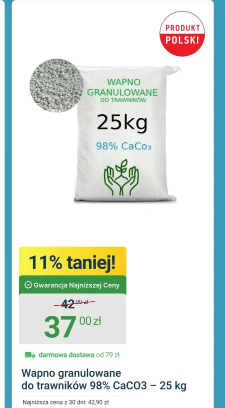 Wapno granulowane do trawników 98% CaCO3 – 25 kg Najniższa cena z 30 dni: 42,90 zł