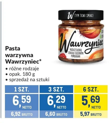 Wawrzyniec Pasta warzywna ze słodką cebulką i suszonymi pomidorami 180 g - Oferta archiwalna