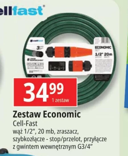 Zestaw Economic Cell-Fast wąż 1/2", 20 mb, zraszacz, szybkozłącze - stop/przelot, przyłącze z gwintem wewnętrznym G3/4"