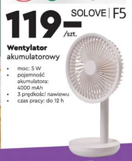 Wentylator akumulatorowy o mocy 5 W.