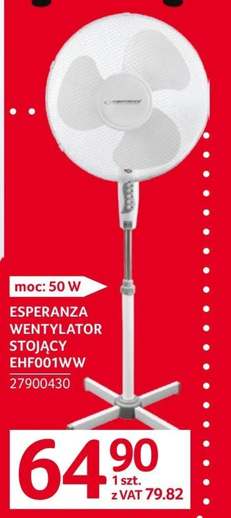 WENTYLATOR STOJĄCY EHF001WW. Moc 50 W.