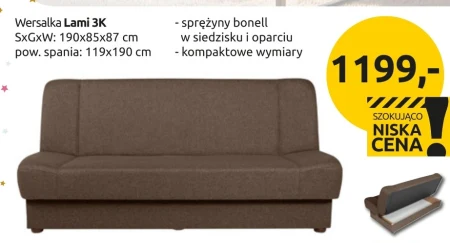 Wersalka Lami 3K SxGxW: 190x85x87 cm pow. spania: 119x190 cm - sprężyny bonell w siedzisku i oparciu - kompaktowe wymiary
