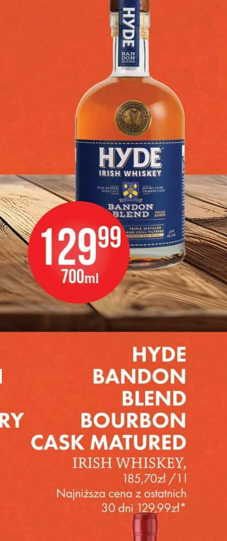 HYDE BANDON BLEND BOURBON CASK MATURED IRISH WHISKEY, 700 ml