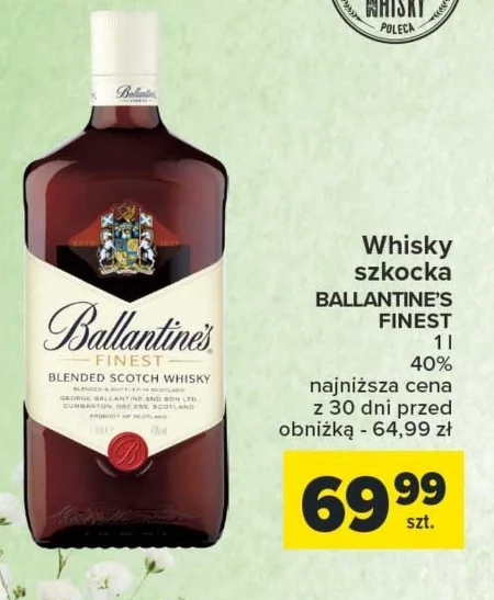 Whisky szkocka BALLANTINE'S FINEST 1 l 40% najniższa cena z 30 dni przed obniżką - 64,99 zł