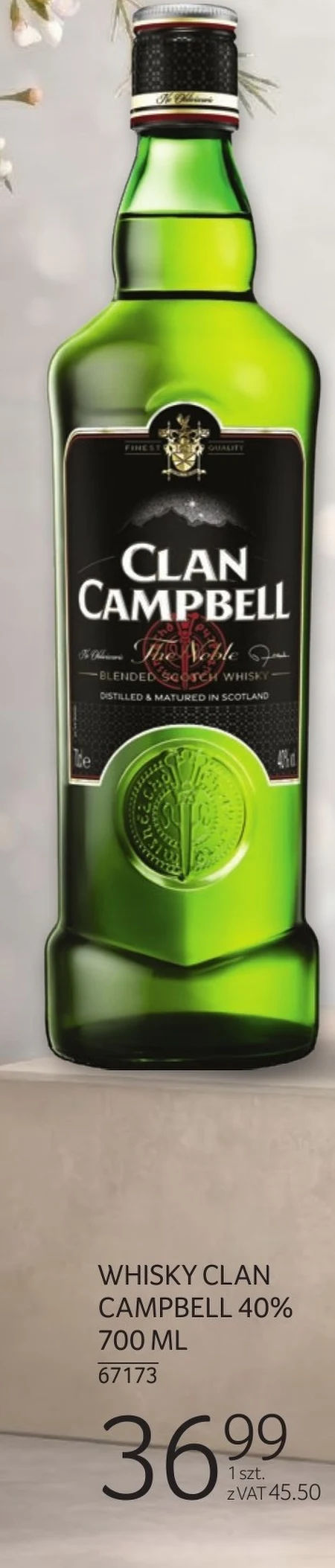 Whisky Clan Campbell o pojemności 700 ml jest dostępna w Selgros Cash&Carry w cenie 36,99 zł. Trunek o mocy 40% to propozycja dla osób ceniących klasyczny smak whisky. Doskonale sprawdzi się zarówno podczas spotkań z przyjaciółmi, jak i jako element wieczornego relaksu. Warto skorzystać z tej oferty i spróbować tego wyjątkowego trunku.