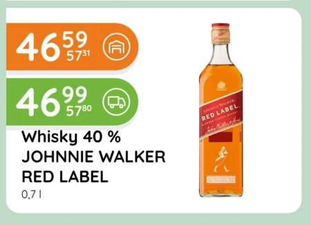 Whisky 40 % marki JOHNNIE WALKER RED LABEL w butelce o pojemności 0,7 l jest dostępny w ofercie Eurocash Cash&Carry. Produkt ten to klasyczna, szkocka whisky, idealna do spożywania z lodem lub jako składnik popularnych drinków. Charakteryzuje się wyrazistym, korzennym smakiem i aromatem, co czyni go popularnym wyborem wśród miłośników whisky. To propozycja dla osób poszukujących sprawdzonych smaków i cenionej jakości. Warto skorzystać z możliwości zakupu w Eurocash Cash&Carry i cieszyć się ulubionym trunkiem. Oferta ważna od 2026-04-02 do 2026-04-15 Źródło: gazetka Eurocash Cash&Carry