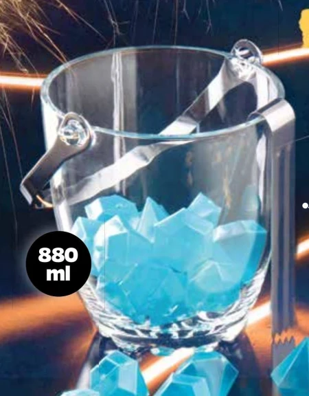 Wiaderko do lodu, wygodny uchwyt ułatwia przenoszenie wypełnionego naczynia 1 kpl. szczypce w zestawie.