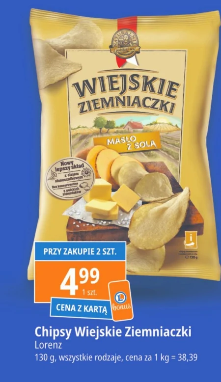 Wiejskie Ziemniaczki Chipsy ziemniaczane kocioł drwala 130 g - Oferta archiwalna