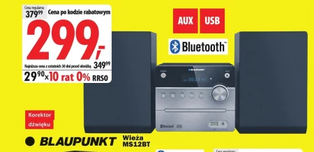 Wieża MS12BT występuje w ofercie Media Expert w cenie 299 zł dzięki kodowi rabatowemu, podczas gdy cena regularna wynosi 379,99 zł. Najniższa cena z ostatnich 30 dni przed obniżką to 349,99 zł, a teraz możesz skorzystać z możliwości rozłożenia płatności na 29 równych rat 0% RRSO. Urządzenie wyposażone jest w odtwarzacz AUX, USB oraz technologię Bluetooth, co pozwala na szeroki wybór źródeł dźwięku i wygodne połączenie z innymi urządzeniami. Dodatkowo, korektor dźwięku umożliwia dopasowanie brzmienia do indywidualnych preferencji. To świetna okazja, aby cieszyć się wysoką jakością dźwięku w atrakcyjnej cenie. Oferta ważna od 2026-04-09 do 2026-04-18 Źródło: gazetka Media Expert