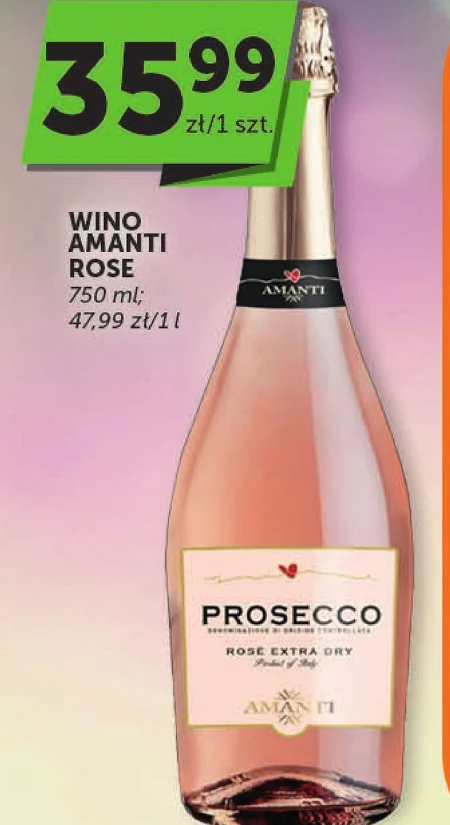 Wino Amanti Rose dostępne jest w promocji za 35,99 zł za butelkę o pojemności 750 ml, co daje cenę 47,99 zł za litr. To idealna propozycja na letnie dni, by schłodzić się z kieliszkiem w ręku. Sprawdź, czy w Twoich ulubionych sklepach, w których obowiązują aktualne gazetki promocyjne, znajdziesz jeszcze niższe ceny na wino Amanti Rose. Zachęcamy do przeglądania ofert Moje Sklepy, gdzie ta butelka może być jeszcze bardziej opłacalna.