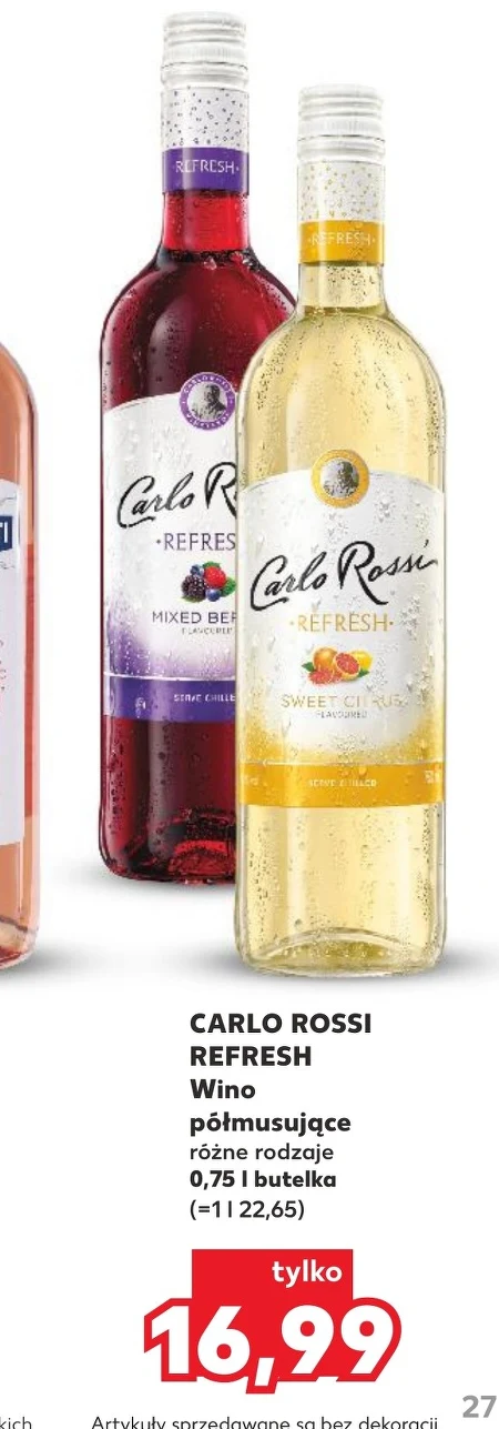 CARLO ROSSI REFRESH Wino półmusujące różne rodzaje 0,75 l butelka (=1 l 22,65)