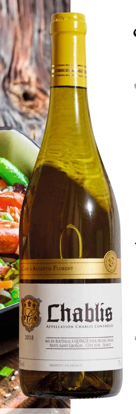Wino Chablis, białe wytrawne, 0,75 l. Zawartość alkoholu 12,5%.