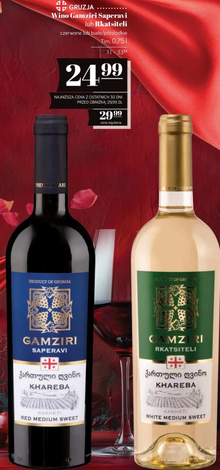 Wino Gamziri Saperavi lub Rkatsiteli czerwone lub białe/połsłodkie Tim, 0,75l