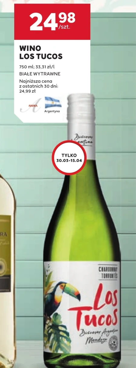 Wino Los Tucos Białe Wytrwane dostępne jest w Stokrotce w cenie 24,98 zł za butelkę 750 ml. To obniżka z 24,99 zł, czyli najniższa cena w ostatnich 30 dniach. Wino o mocy 13,31 zł/l idealnie sprawdzi się do lekkich dań rybnych lub jako aperitif. Sprawdź aktualną gazetkę Stokrotki i dołącz do grona zadowolonych klientów.