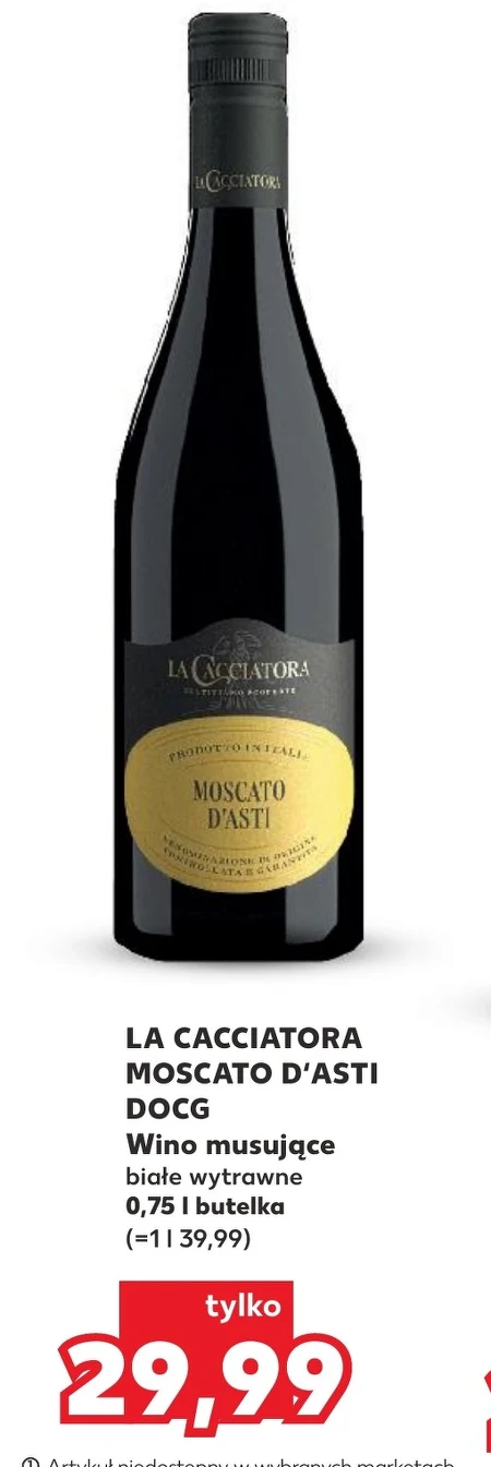 LA CACCIATORA MOSCATO D’ASTI DOCG Wino musujące białe wytrawne 0,75 l butelka (=1 l 39,99)