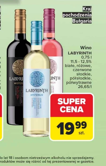 Wino LABYRINTH w Carrefour dostępne jest teraz w cenie 19,99 zł za butelkę 0,75 l, co przekłada się na 26,65 zł za litr. To propozycja dla miłośników zarówno białych, różowych, jak i czerwonych win, oferowanych w wersjach słodkich, półsłodkich oraz półwytrawnych. Sprawdza się idealnie do lekkich przekąsek i spotkań towarzyskich, a aktualna promocja Carrefour czyni je szczególnie atrakcyjnym wyborem. Oznaczone jako SUPER CENA, wino LABYRINTH stanowi okazję do uzupełnienia zapasów lub spróbowania nowych smaków.