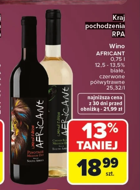 Wino półwytrawne AFRICANT PINOTAGE