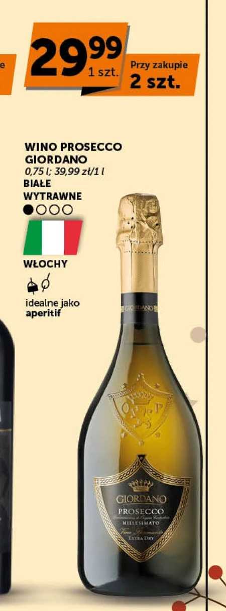 WINO PROSECCO GIORDANO 0,75 l; 39,99 zł/1 l BIAŁE WYTRAWNE