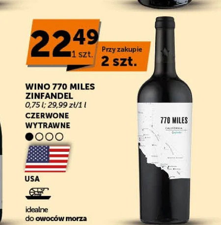 WINO 770 MILES ZINFANDEL 0,75 l; 29,99 zł/1 l CZERWONE WYTRAWNE