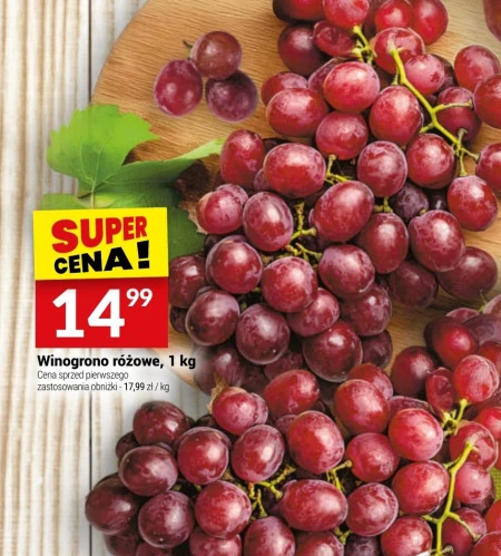 Winogrono różowe dostępne jest w Twoj Market w cenie 14,99 zł za kilogram. Przed obniżką kosztowało 17,99 zł za kilogram. To słodkie i soczyste owoce idealnie nadają się do bezpośredniego spożycia jako zdrowa przekąska, a także mogą być wykorzystywane do deserów lub jako dodatek do sałatek. Warto skorzystać z tej okazji i zaopatrzyć się w świeże winogrona w korzystnej cenie. Oferta ważna od 2026-04-08 do 2026-04-14 Źródło: gazetka Twoj Market