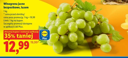 Jasne winogrona bezpestkowe, luzem, można teraz nabyć w Lidl za wyjątkowo korzystną cenę 12,99 za kilogram, dzięki 35% obniżce z ceny regularnej 19,99. Te słodkie i soczyste owoce to idealna przekąska, świetnie sprawdzają się w deserach, sałatkach, a także jako dodatek do dań wytrawnych. Pamiętaj, że limit zakupu to 1 kg na kupon, a szczegóły promocji są dostępne w aplikacji Lidl Plus – aktywuj kupon i ciesz się świeżością tych owoców w atrakcyjnej cenie.
