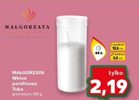 MAŁGORZATA Wkład parafinowy Tuba gramatura 135 g Į wysokość 13,5 cm Ø średnica 5,5 cm