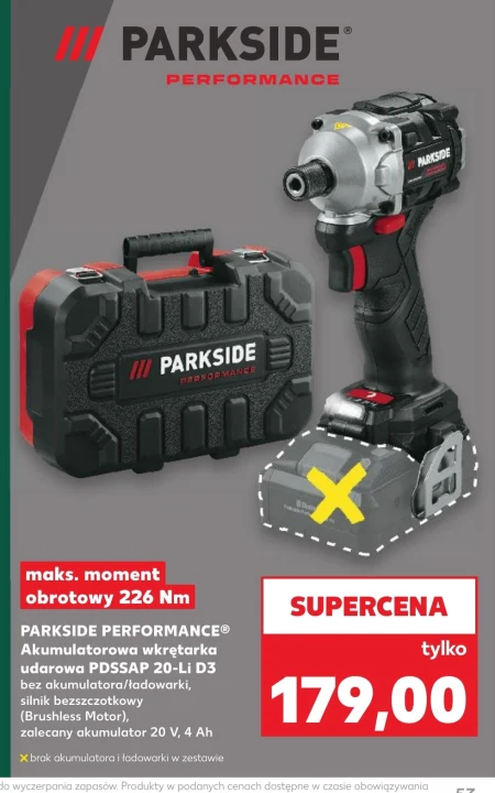 maks. moment obrotowy 226 Nm PARKSIDE PERFORMANCE® Akumulatorowa wkrętarka udarowa PDSSAP 20-Li D3 bez akumulatora/ładowarki, silnik bezszczotkowy (Brushless Motor), zalecany akumulator 20 V, 4 Ah
