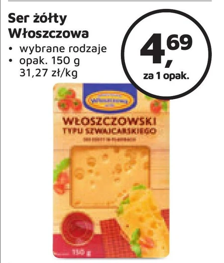 Włoszczowa Ser żółty w plastrach włoszczowski typu szwajcarskiego 150 g - Oferta archiwalna