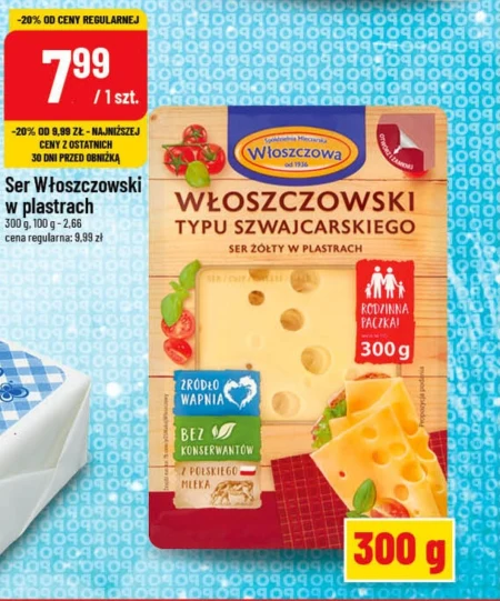 Włoszczowa Ser żółty włoszczowski typu szwajcarskiego w plastrach 300 g - Oferta archiwalna