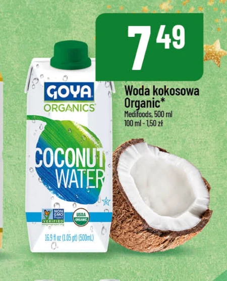 Woda kokosowa Organic* Medifoods, 500 ml 100 ml - 1,50 zł