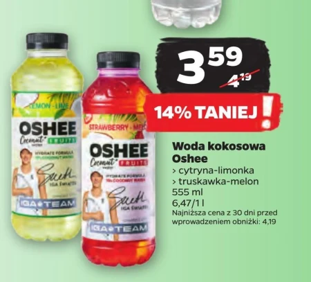 Woda kokosowa Oshee > cytryna-limonka > truskawka-melon 555 ml 6,47/1l Najniższa cena z 30 dni przed wprowadzeniem obniżki: 4,19