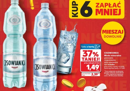 CISOWIANKA Woda mineralna gazowana, niegazowana, lekko gazowana 1,5 l butelka (przy 6 but z kartą =110,99) (cena reg/bez karty =111,59)