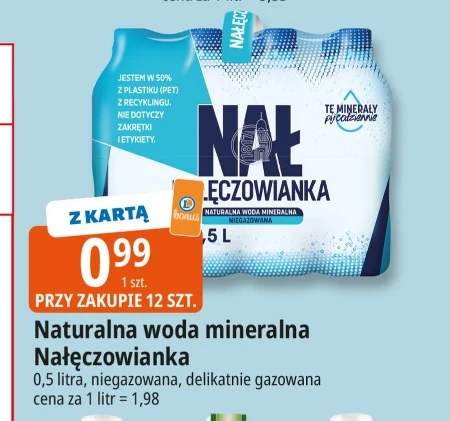 Naturalna woda mineralna Nałęczowianka 0,5 litra, niegazowana, delikatnie gazowana cena za 1 litr = 1,98