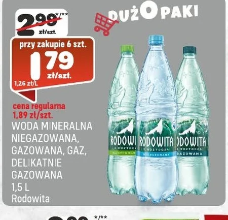 WODA MINERALNA NIEGAZOWANA, GAZOWANA, GAZ, DELIKATNIE GAZOWANA 1,5 L Rodowita