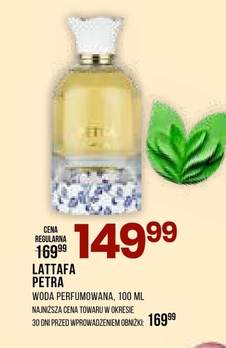 LATTAFA PETRA WODA PERFUMOWANA, 100 ml NAJNIŻSZA CENA TOWARU W OKRESIE 30 DNI PRZED WPROWADZENIEM OBNIŻKI: 169⁹⁹