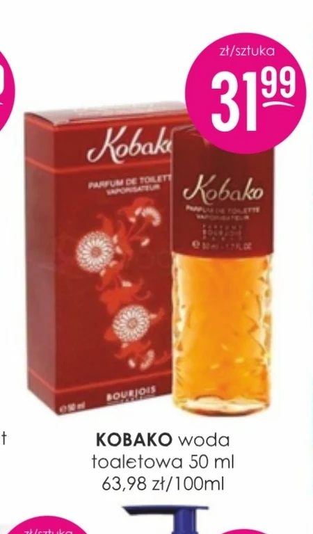 Woda toaletowa KOBAKO o pojemności 50 ml jest dostępna w ofercie Jasmin Drogerie w cenie 31,99 zł za sztukę, co daje 63,98 zł za 100 ml. To kompozycja zapachowa stworzona do codziennego użytku, idealna dla osób ceniących świeżość i delikatność. Produkt sprawdzi się jako subtelny akcent do codziennej stylizacji, odświeżając i pozostawiając przyjemne wrażenie. Skorzystaj z okazji i uzupełnij zapasy ulubionego zapachu lub odkryj nową, orzeźwiającą nutę w swojej kosmetyczce.