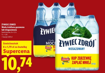 ŻYWIEC ZDRÓJ Woda źródlana gazowana lub niegazowana Sześciosztuk, 6 x 1,5 l 1 L = 1,19 + kaucja 3,00 zł