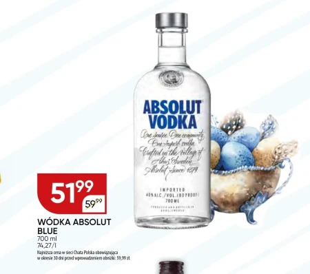 Wódka Absolut Blue, dostępna w ofercie Chata Polska, kosztuje 51,99 zł za butelkę o pojemności 700 ml, przy cenie za litr wynoszącej 74,27 zł, w ramach obniżki z 59,99 zł. To klasyczna wódka o charakterystycznym, niepowtarzalnym smaku, idealna do przygotowania koktajli lub picia w czystej postaci. Produkt ten jest ceniony za wysoką jakość i subtelny aromat, stanowiąc doskonały wybór na każdą okazję, a obecna cena to wyjątkowa szansa na zaopatrzenie się w ulubiony trunek w korzystnej cenie.