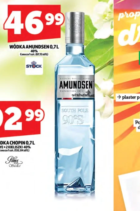 WÓDKA AMUNDSEN 0,7L 40% Cena za 1 szt. (67,13 zł/L) Wódka Amundsen 0,7L to klasyczny trunek o mocy 40%, idealny zarówno do degustacji w czystej postaci, jak i jako baza do koktajli. Aktualnie najkorzystniejszą cenę, 47,00 zł za butelkę, znajdziesz w Topaz – tam właśnie warto zaopatrzyć się w ten popularny alkohol, szczególnie przygotowując się do spotkań ze znajomymi lub rodzinnych uroczystości. Sprawdź aktualną ofertę Topaz i zaplanuj zakupy już dziś.