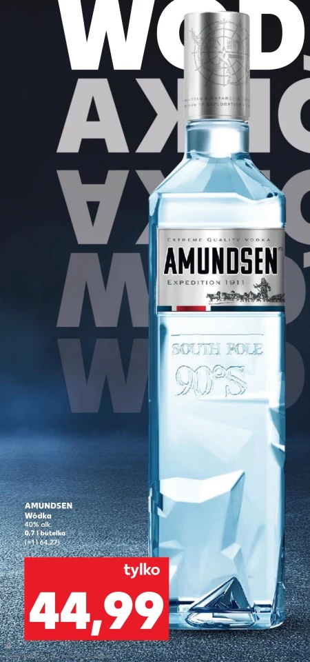 AMUNDSEN Wódka 40% alk. 0,7 l butelka Wódka Amundsen to klasyczny trunek o mocy 40%, idealny do przygotowania drinków lub spożywania na lodzie. Butelka o pojemności 0,7 l sprawdzi się podczas spotkań z przyjaciółmi. Produkt dostępny jest w sklepach Kaufland, gdzie można znaleźć szeroki wybór alkoholi i akcesoriów barmańskich. Wódka Amundsen to propozycja dla osób ceniących tradycyjny smak i jakość.