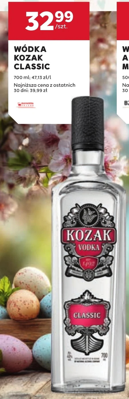 Wódka Kozak Classic w Stokrotce dostępna jest teraz w cenie 33,99 zł za butelkę 700 ml. To obniżka z 39,99 zł, co czyni ją najtańszą w ostatnich 30 dniach. Możesz wykorzystać ten trunek do przygotowania drinków lub spożywać ją w czystej postaci. W Stokrotce płacisz tylko 33,99 zł za 700 ml Kozaka Classic.