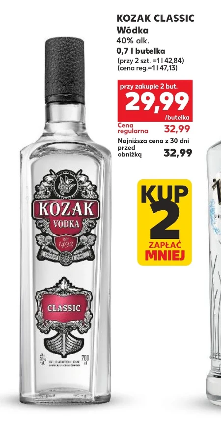 KOZAK CLASSIC Wodka 40% alk. 0,7 l butelka (przy 2 szt. = 11 42,84) (cena reg .= 11 47,13)