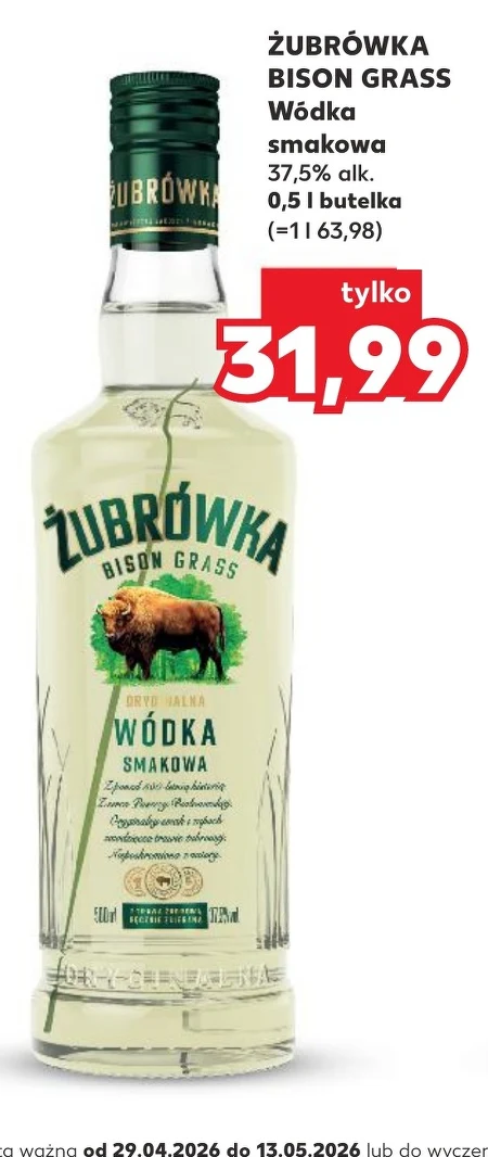 ŻUBRÓWKA BISON GRASS Wódka smakowa 37,5% alk. 0,5 1 butelka