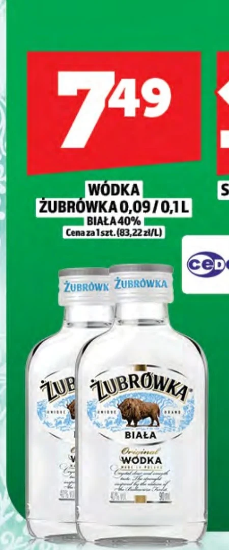 WÓDKA ŻUBRÓWKA 0,09/0,1L BIAŁA 40%
