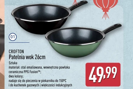 CROFTON Patelnia wok 26cm Sztuka materiał: stal emaliowana, wewnętrzna powłoka ceramiczna PPG Fusion™; dwa kolory; nadaje się do pieczenia w piekarniku do 150℃ i do kuchenek gazowych i większości indukcyjnych