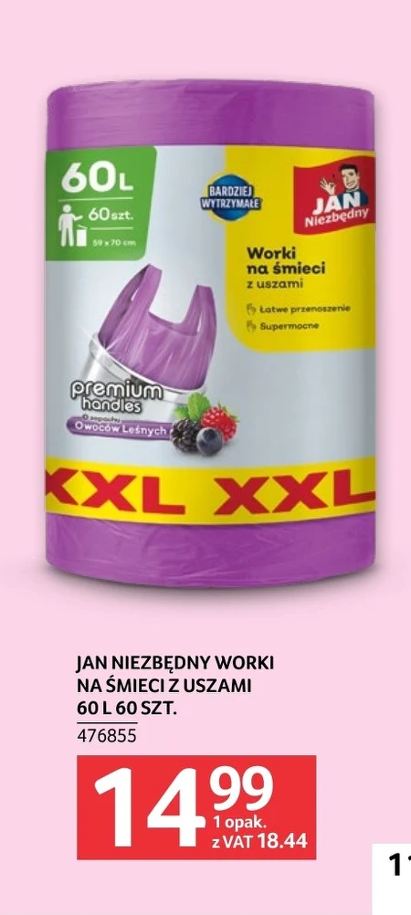 JAN NIEZBĘDNY WORKI NA ŚMIECI Z USZAMI 60 L 60 SZT. 476855
