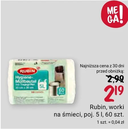 Rubin, worki na śmieci, poj. 5 l, 60 szt. 1 szt. = 0,04 zł