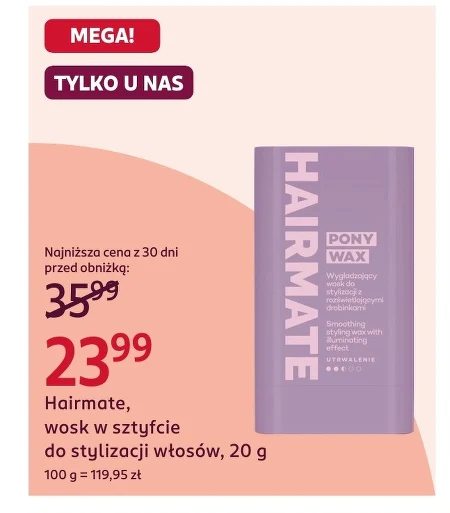 Hairmate, wosk w sztyfcie do stylizacji włosów, 20 g 100 g = 119,95 zł